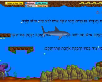 Two players navigate their submarine through a maze of challenges as they practice the Hebrew-Letter number system.
